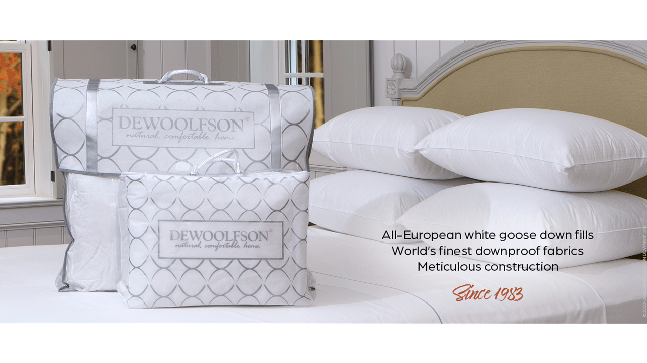 For over 40 years, DeWoolfson has been proudly producing America's finest quality white goose down comforters in 4 weights, pillows stuffed to your heart's content, and toppers, using Austrian or German-engineered down proof fabrics and all-European white goose down fills. Each item is filled and finished for immediate shipment from our plant here in the High Country. Also featuring select luxury linens from Matouk, SFERRA, Yves Delorme, and more at our store 9452 HWY 105 S, Banner Elk, NC 28604. Or visit us online at DeWoolfsonLinens.com. 828.963.4144