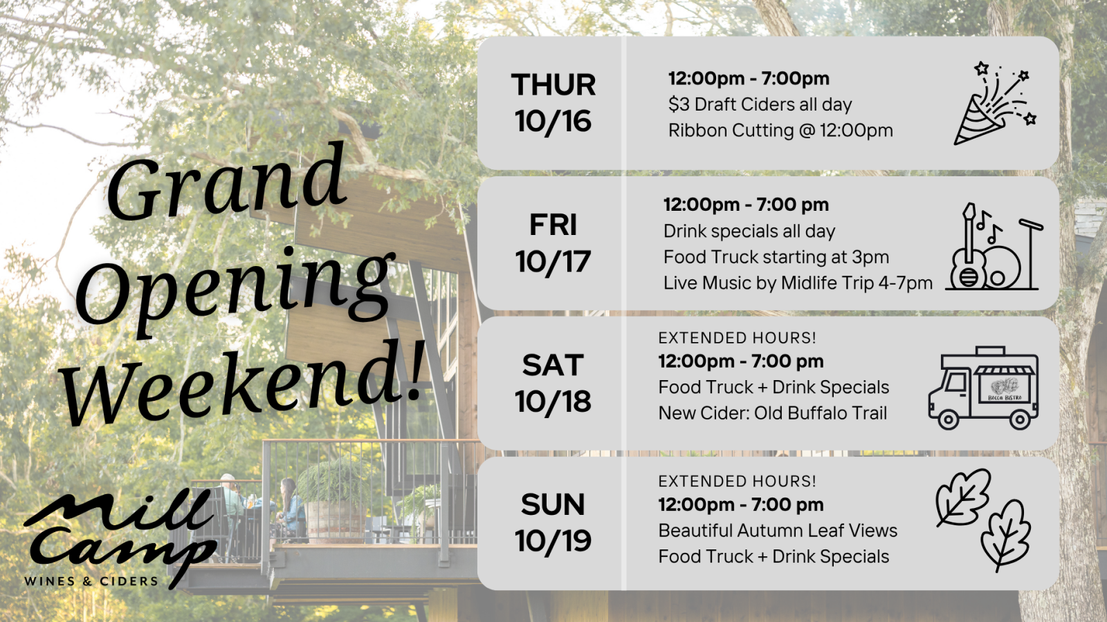 Let's toast to new beginnings at the Grand Opening of Mill Camp Wines & Ciders!