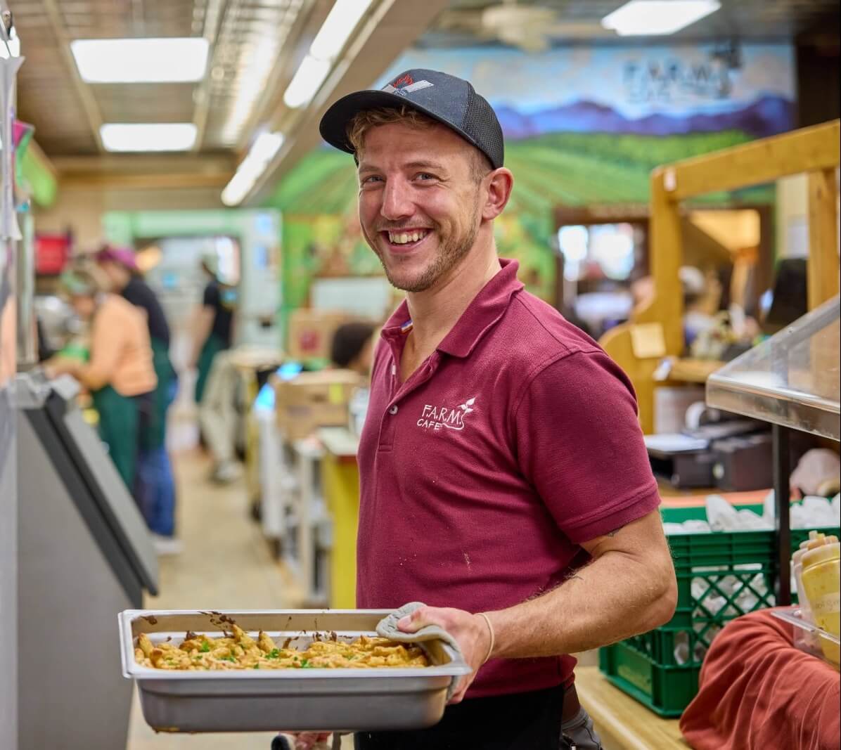Resourceful, creative, and deeply passionate about people, Shane Hillman has spent four years as Program Director at F.A.R.M. Cafe. He coordinates volunteers, sources local ingredients, manages catering, and represents the cafe at farmers markets, all while crafting a daily menu that makes the most of whatever the region has to offer. With a background in humanitarian work, Shane's engagement with High Country Young Professionals, BRIWA, and the Hunger and Health Coalition reflects a commitment that stretches well beyond the kitchen.
