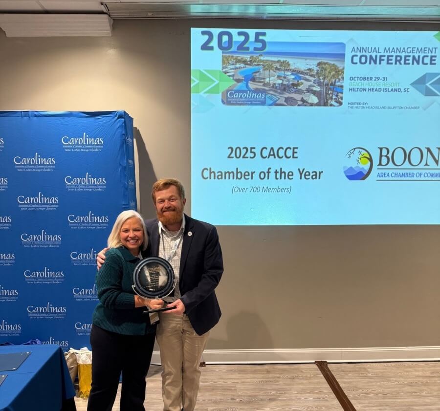 The Boone Area (NC) Chamber of Commerce was honored as the recipient of the prestigious award.
