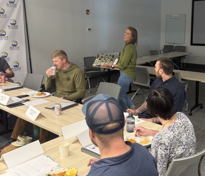 Meanwhile, the Development cohort gathered at the Boone Area Chamber of Commerce for their own final day. After check-in and coffee, Dr. Jim Street led an extended What's Different & What Will Be Different session running through midday, giving participants a meaningful block of time to reflect on how they've changed since January 22 and what kind of leaders they want to be going forward.