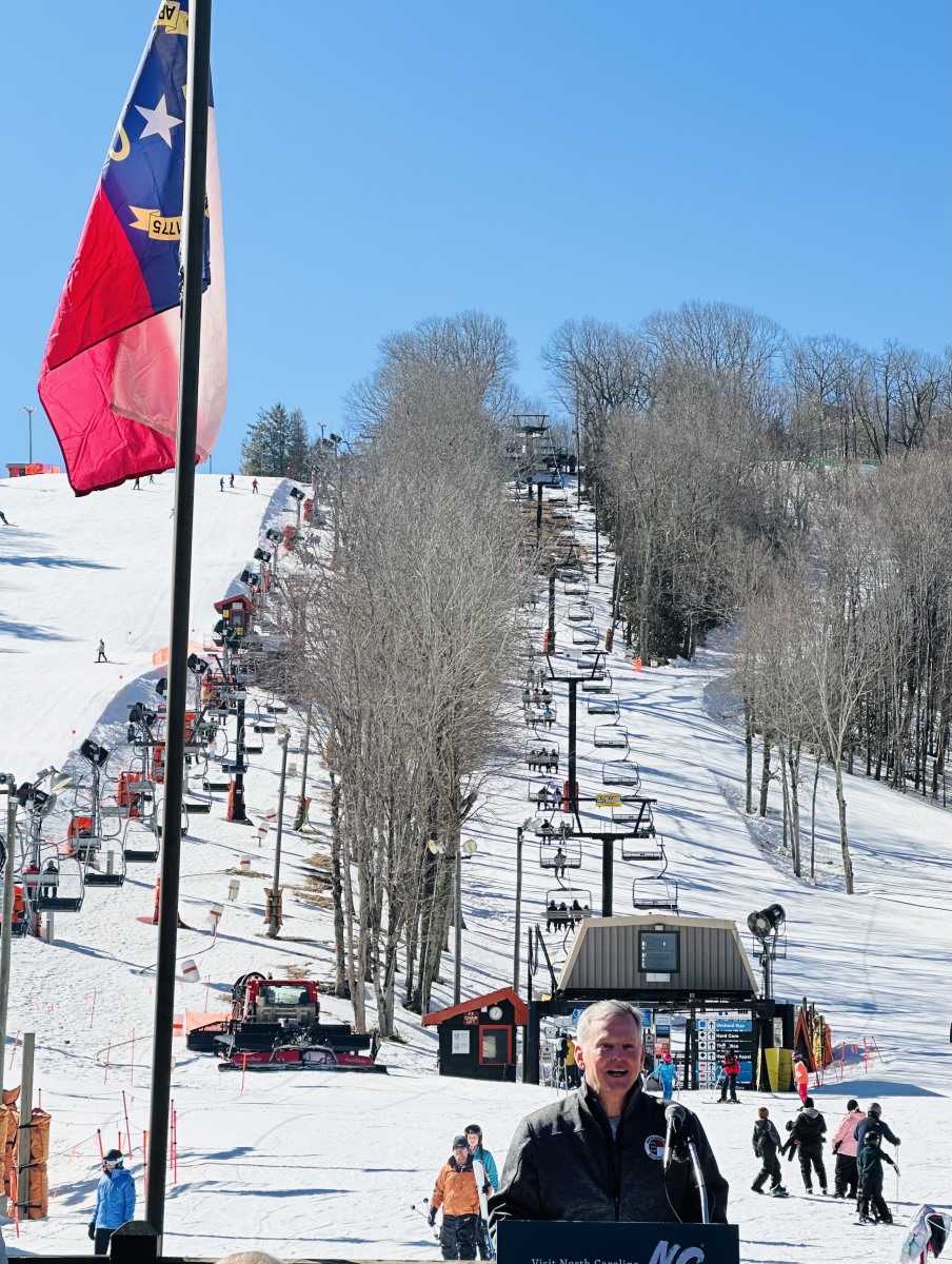 Governor Stein was joined by Brad Moretz with Appalachian Ski Mountain, Kim Jochl with the North Carolina Ski Association and Sugar Mountain Resort, Ryan Costin with Beech Mountain Resort, and Whit Tuttell with Visit NC.